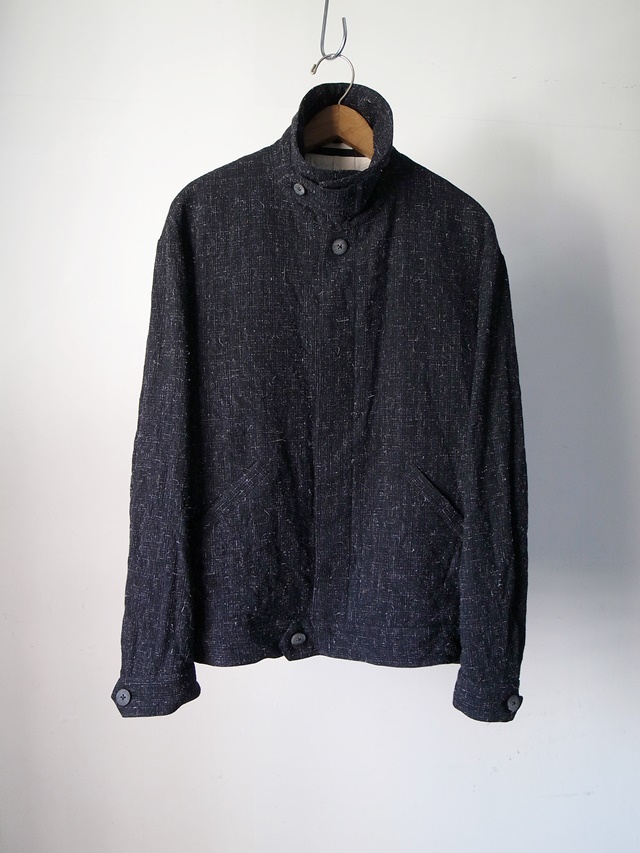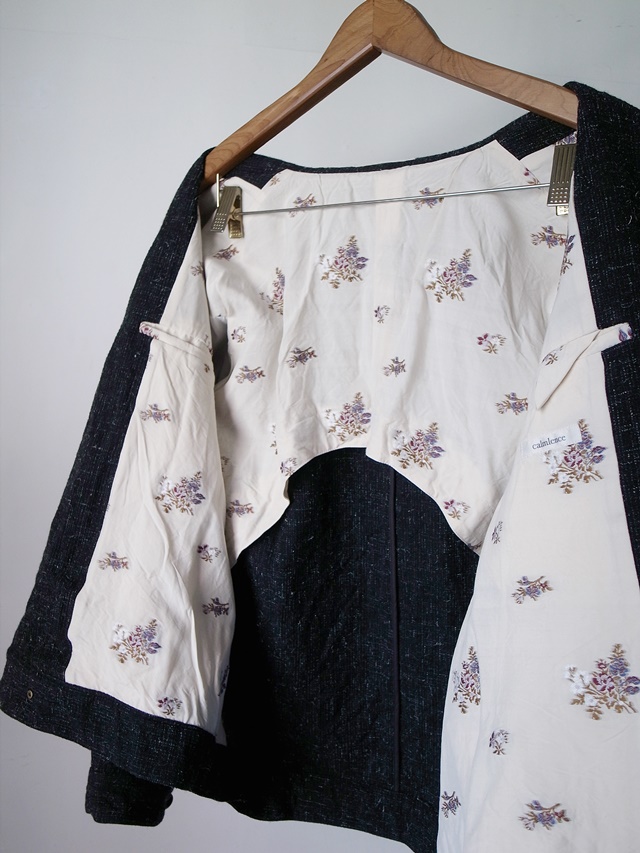 calmlence material : WOOL75%,LINEN15%,KEMP7%,NYLON3% *LINING:(BODY)RAYON43%,CUPRO37%,POLYESTER20% (SLEEVE)RAYON57%,COTTON43% color : BLACK size : 1 price(incl.tax) : 118,800yen <<back