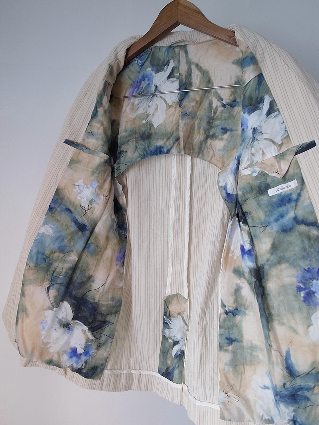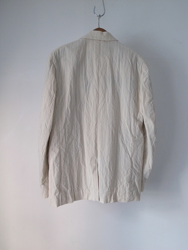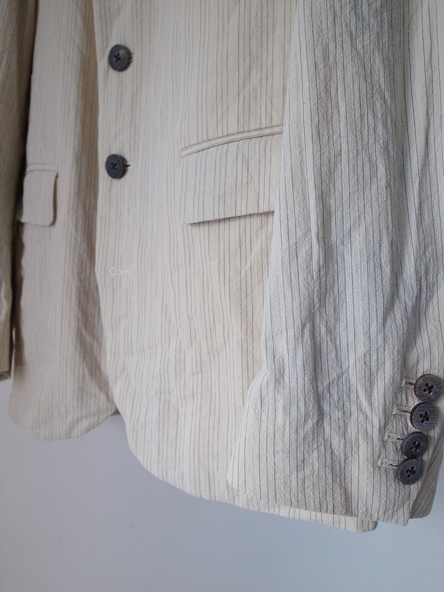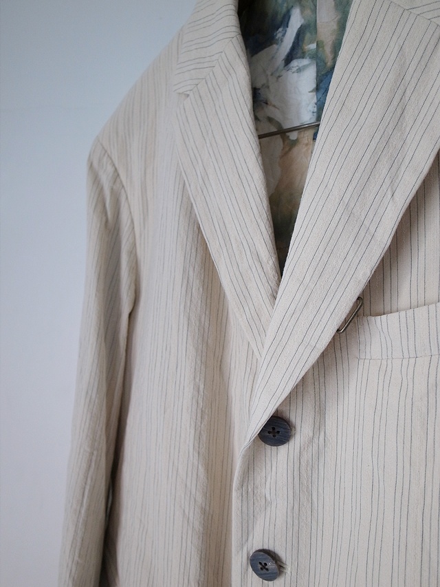 calmlence material : COTTON 99%, POLYESTER 1% *HALF LINING:SILK 31%, CUPRO 69% color : BEIGE STRIPE size : 1 / 2 price(incl.tax) : 152,900yen <<back
