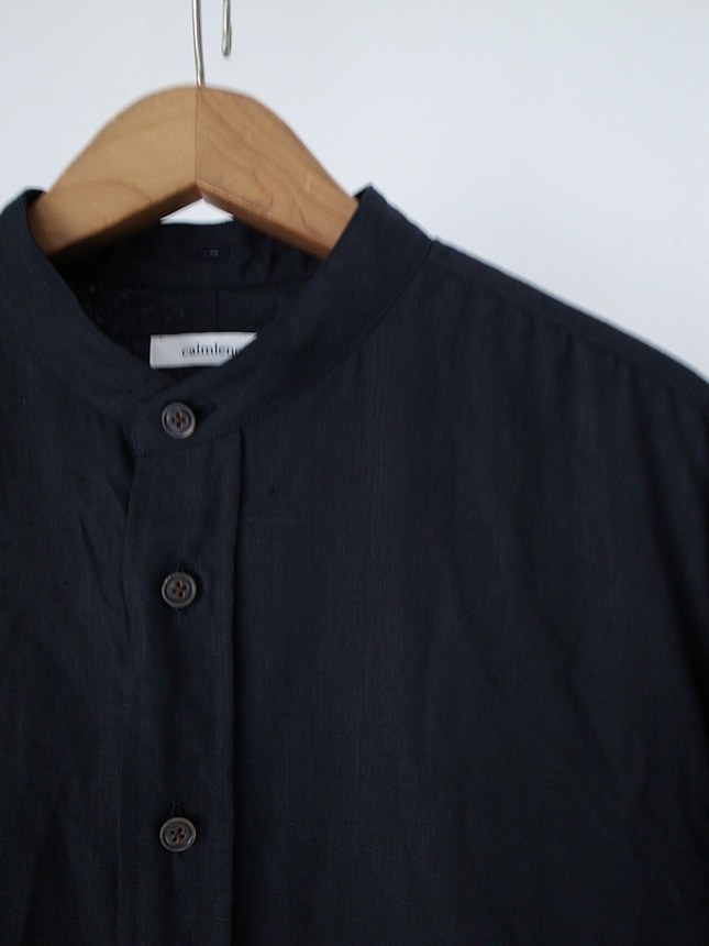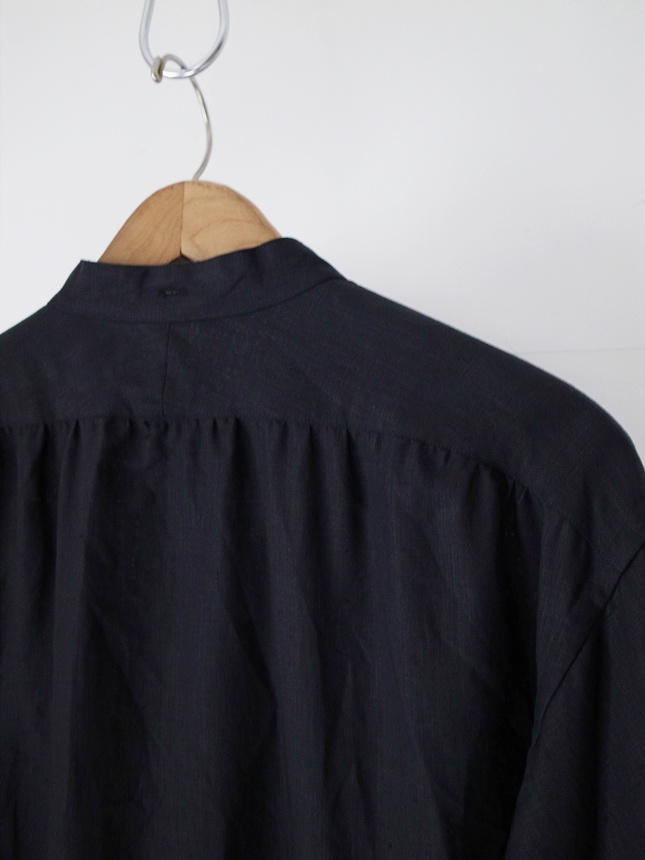 calmlence -BAND COLLAR PULLOVER SHIRT- material : LINEN 100% color : BLACK size : 1 / 3 price(incl.tax) : 69,300yen <<back