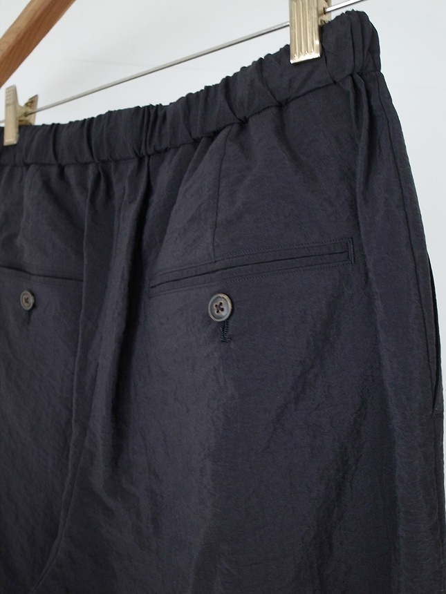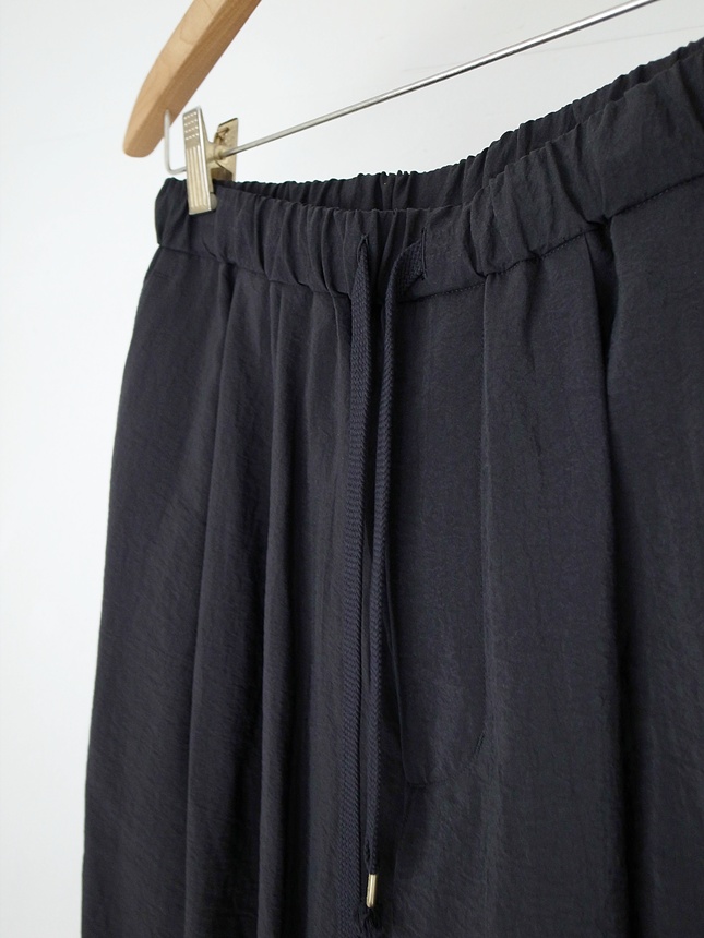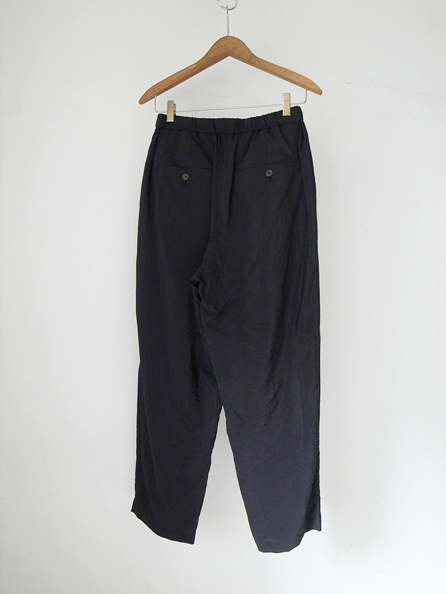 calmlence -DOUBLE PLEATED EASY TAPERED PANTS- material : SILK 80%, NYLON 20% color : BLACK size : 2 / 3 price(incl.tax) : 75,900yen <<back