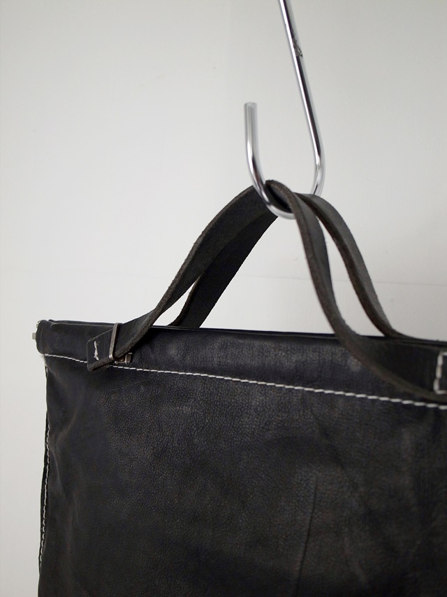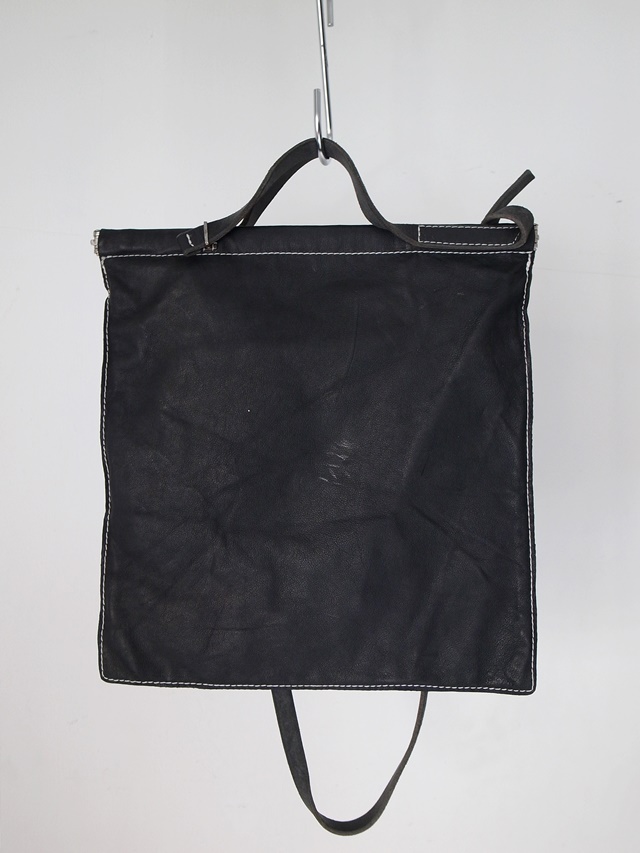 taichimurakami material : KANGAROO 100% *POLYETHYLENE 100% color : BLACK size : Length:31cm, Width: 30cm, Belt width:1.5cm price(incl.tax) : ASK <<back